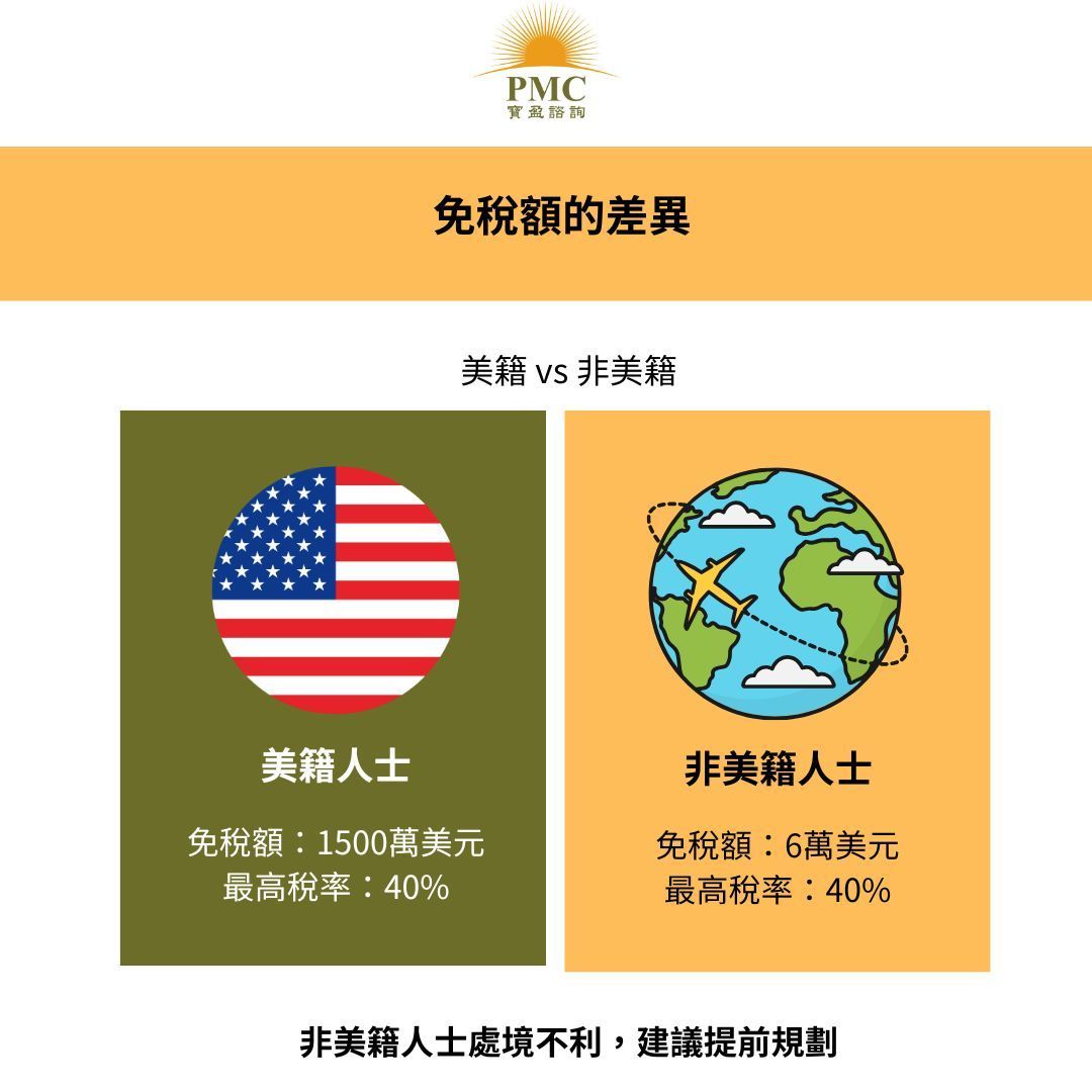 美籍人士(美國公民、美國永久居民與美國稅務居民): 全球資產(不論有型、無型資產)皆是遺產稅課徵標的。